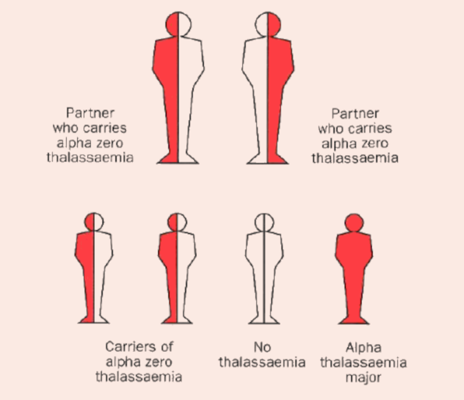 If both partners are carriers then there is a 1 in 4 chance of each pregnancy to produce a child with Alpha Zero thalassaemia major.This is a very serious anaemia that develops in the unborn baby and it can only happen when both parents carry alpha zero thalassaemia.