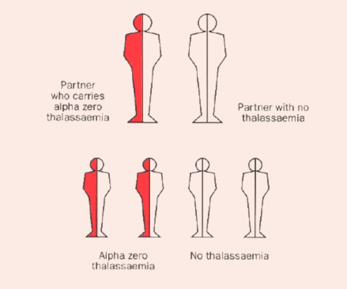 If a couple are tested and only one partner proves to be a carrier then there is no danger to their children. In each pregnancy there is a 1 in 2 chance that the child will carry alpha zero thalassaemia.