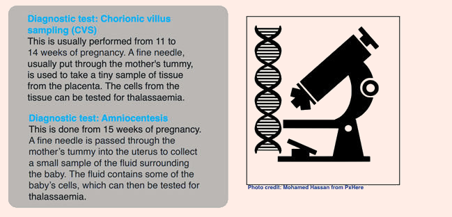 Further counselling and information are provided if the presence of thalassaemia is confirmed, including advice and support for the options of continuation or termination of pregnancy if thalassaemia major is identified.